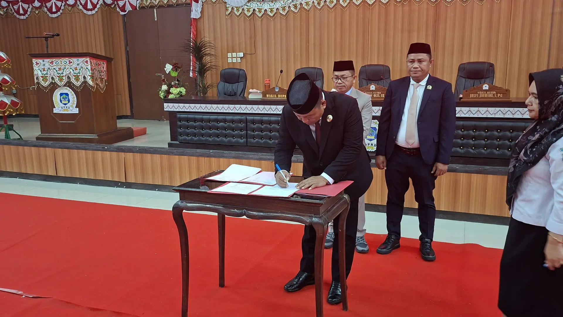 Rapat paripurna tersebut dipimpin langsung oleh Wakil Ketua DPRD Ridwan Olii SE dan Wakil Ketua Jelfi Jauhari. Hadir dalam kegiatan, Wakil Bupati Deddy Abdul Hamid, para anggota DPRD, para pejabat tinggi pratama, administrator, pengawas, fungsional, jajaran ASN dan para sangadi.