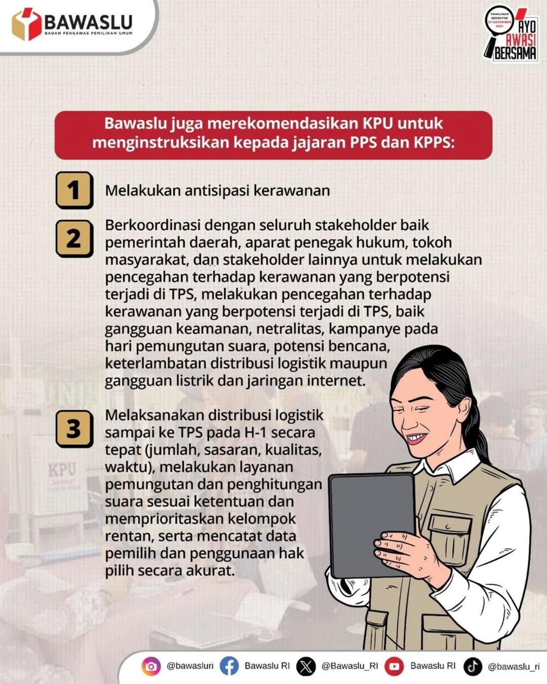 Hal bertujuan untuk mengantisipasi gangguan atau hambatan di TPS pada hari pemungutan suara.