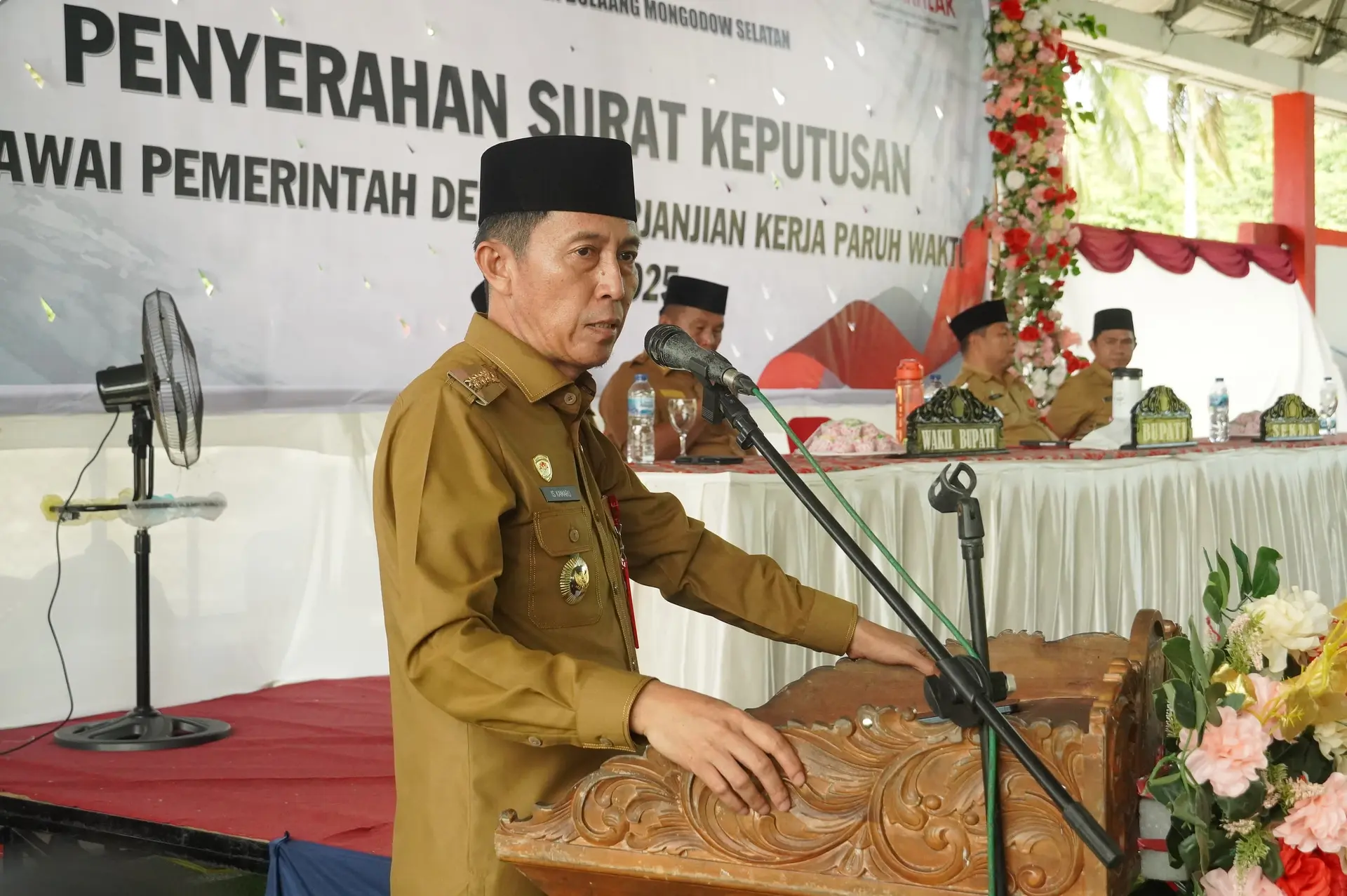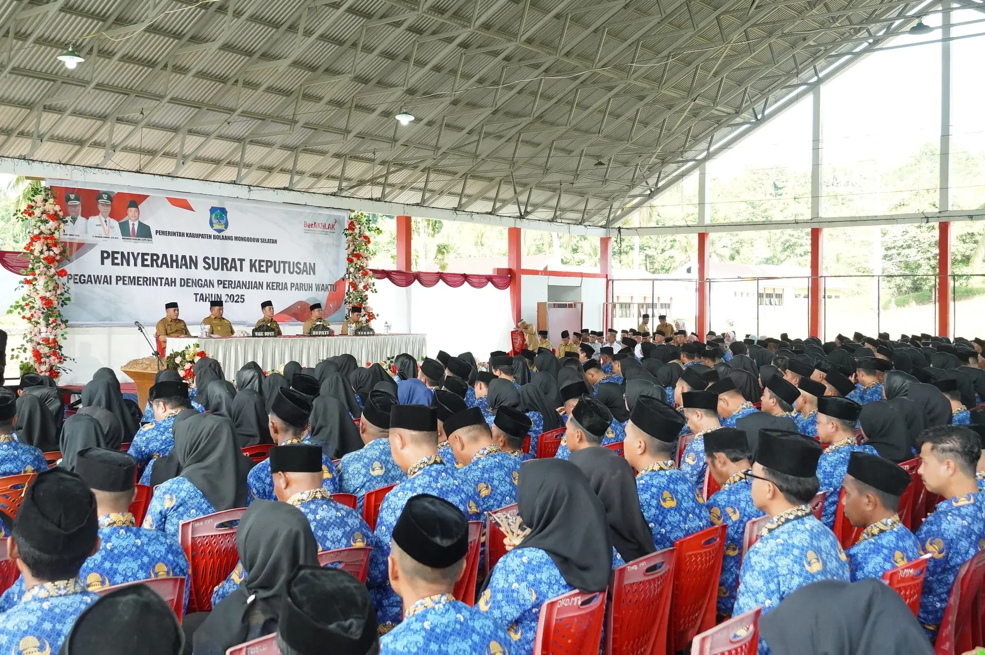 Hallonusantara.id Bolsel—Sebanyak 485 orang Pegawai Pemerintah dengan Perjanjian Kerja (PPPK/P3K) Paruh Waktu di lingkungan Pemerintah Daerah Kabupaten Bolaang Mongondow Selatan yang terdiri dari 315 tenaga teknis, 131 tenaga pendidik (guru), dan 39 tenaga kesehatan, hari ini, Senin, 17 November 2025, resmi menerima Surat Keputusan (SK) pengangkatan.