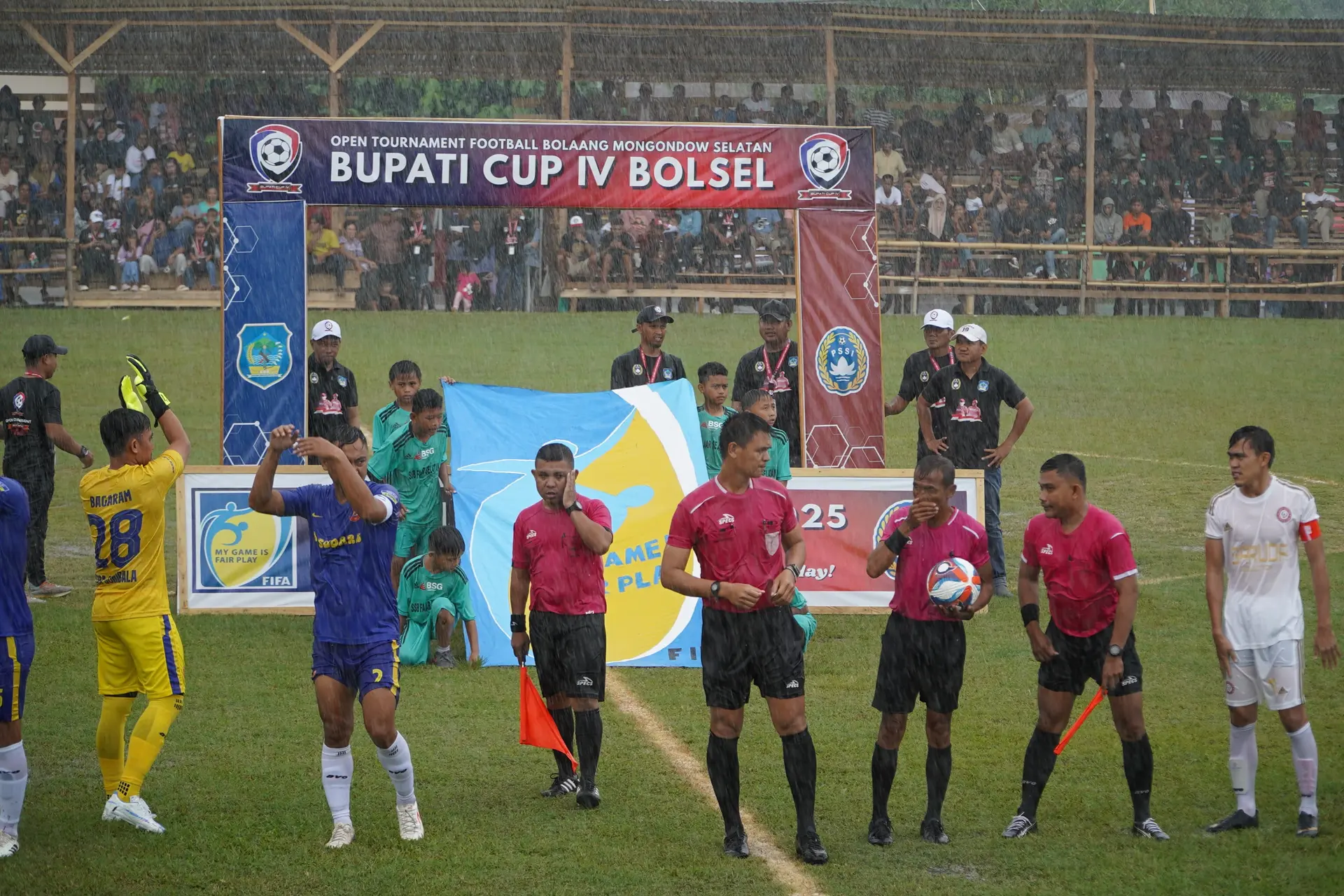 Hallonusantara.id Bolsel—Turnamen Sepakbola Bupati Cup IV Tahun 2025 resmi dibuka oleh Bupati H. Iskandar Kamaru SPt, MSi dan Wakil Bupati Deddy Abdul Hamid di Lapangan Garuda Desa Pinolosian Kec. Pinolosian. Selasa 21 Oktober 2025. Kegiatan ini disambut antusias oleh masyarakat dan pecinta sepak bola, meskipun berlangsung di tengah hujan deras.