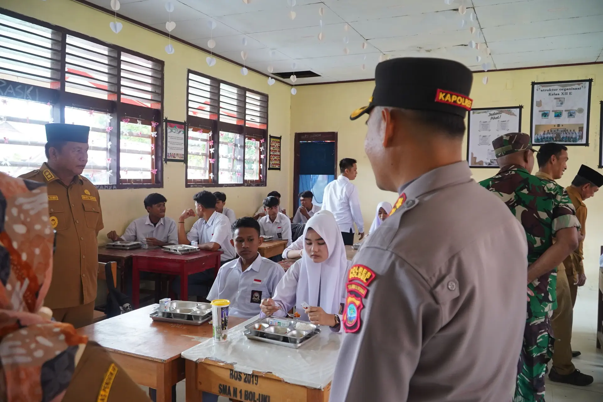 Dalam kegiatan tersebut, Bupati Iskandar dan Wakil Deddy bersama Kapolres Bolsel, Sekda M. Arvan Ohy SSTP, MAP serta para pejabat tinggi pratama Pemda meninjau pelaksanaan program MBG di berbagai tingkatan satuan pendidikan, mulai dari SD, SMP, hingga SMA. Program ini sendiri disambut dengan antusiasme tinggi oleh para siswa dan guru.
