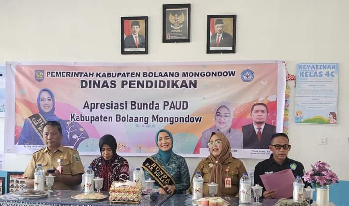 BOLMONG – Kepala Dinas Pendidikan Kabupaten Bolaang Mongondow (Bolmong) Farida Mooduto dampingi Ketua TP-PKK drg. Firlia Mokoginta-Mokoagow saat menghadiri kegiatan Apresiasi Bunda PAUD, Senin, 2 September 2024.