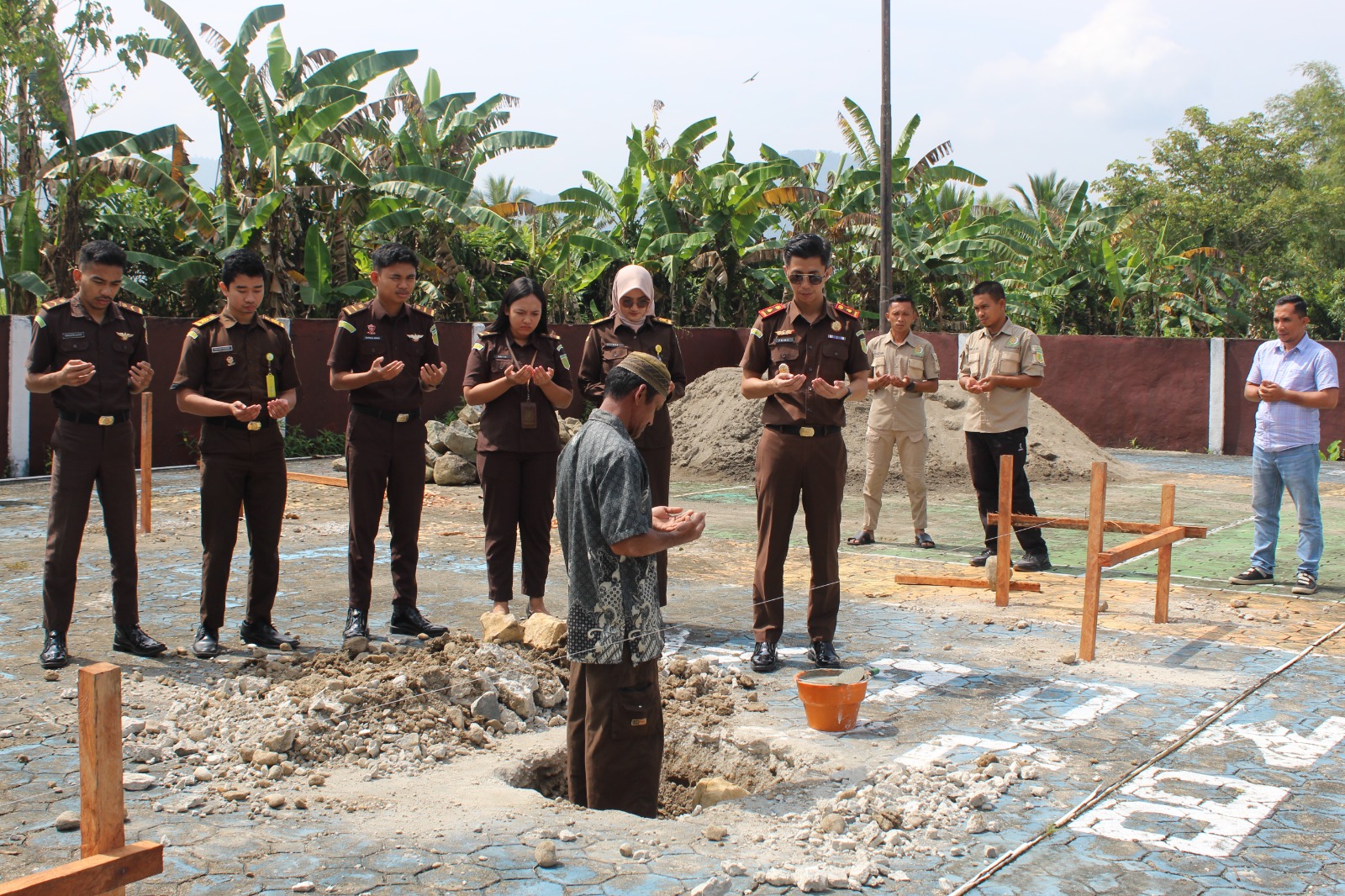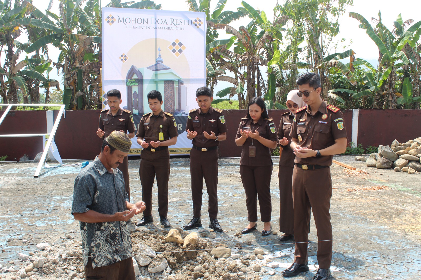 BOLMONG – Cabang Kejaksaan Negeri Kotamobagu di Dumoga, melaksanakan peletakan batu pertama dalam pembangunan Musholla Al-Qohhar.