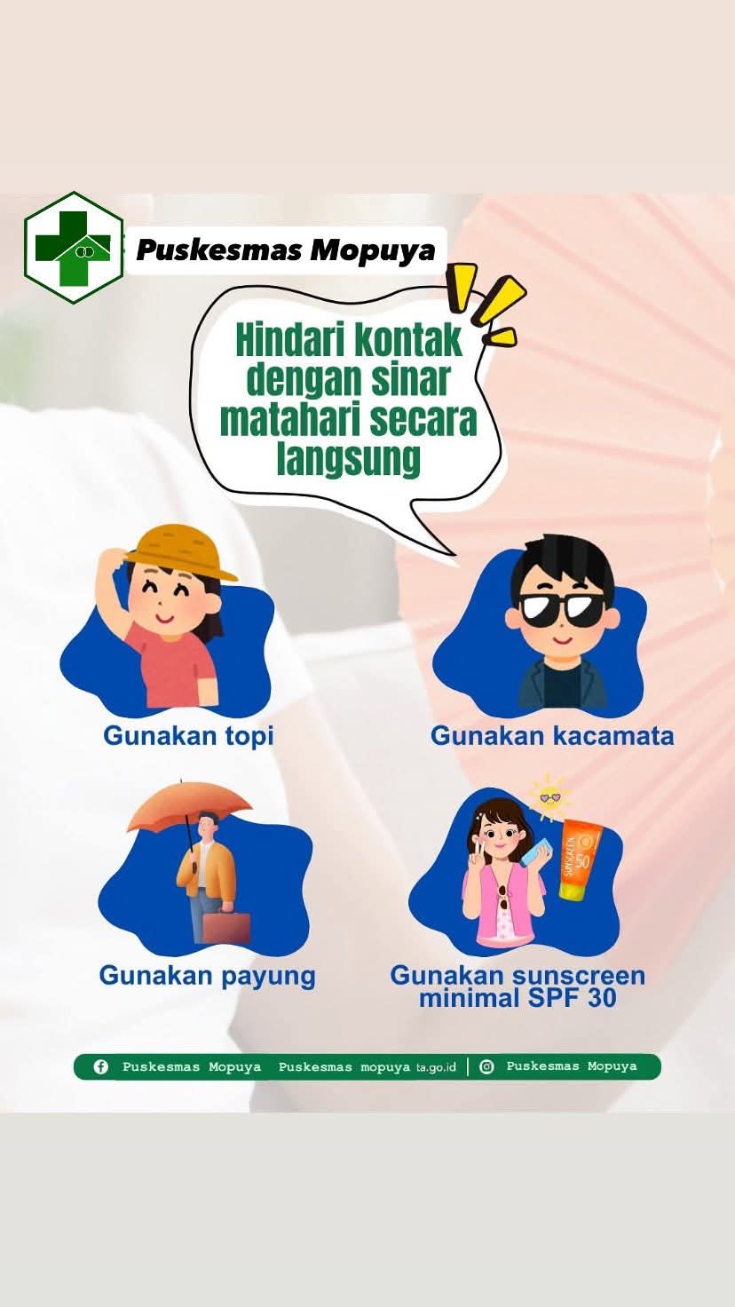 Dalam unggahan edukatif bertajuk “Tips Sehat Saat Panas Ekstrem”, Puskesmas Mopuya mengajak masyarakat untuk melindungi diri dari risiko gangguan kesehatan akibat paparan panas yang berlebihan.