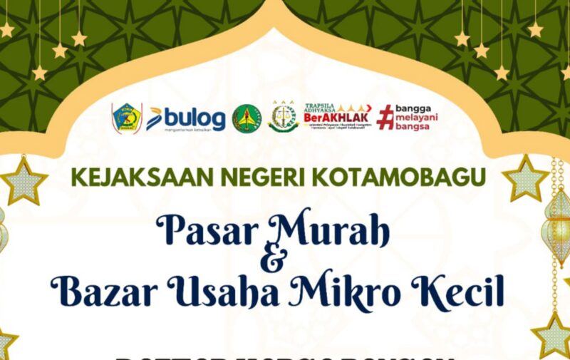KOTAMOBAGU – Kejaksaan Negeri (Kejari) Kotamobagu akan menggelar Pasar Murah dan Bazar Usaha Mikro Kecil (UMK) pada Rabu, 11 Maret 2026. Kegiatan ini diselenggarakan sebagai upaya membantu masyarakat mendapatkan kebutuhan bahan pokok dengan harga yang lebih terjangkau.