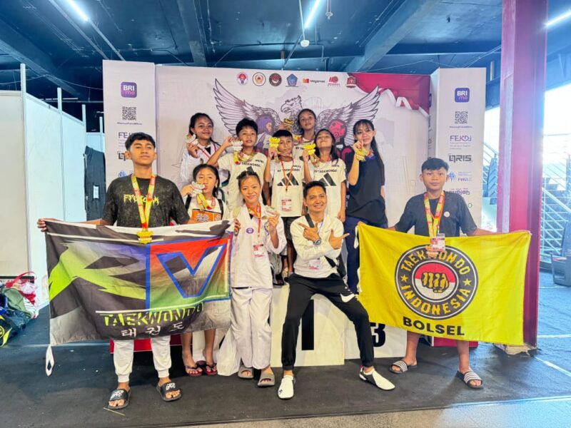 Hallonusantara.id Bolsel—Kontingen Taekwondo Kabupaten Bolaang Mongondow Selatan (Bolsel) menunjukkan performa luar biasa jelang keikutsertaannya pada Pekan Olahraga Provinsi (Porprov) Sulawesi Utara 2025. Berlaga di Piala Gubernur Sulut 2025 yang digelar di Atrium Mega Mall Manado pada 30 September – 4 Oktober 2025, tim Bolsel sukses membawa pulang 13 medali, terdiri atas 6 emas, 6 perak, dan 1 perunggu.
