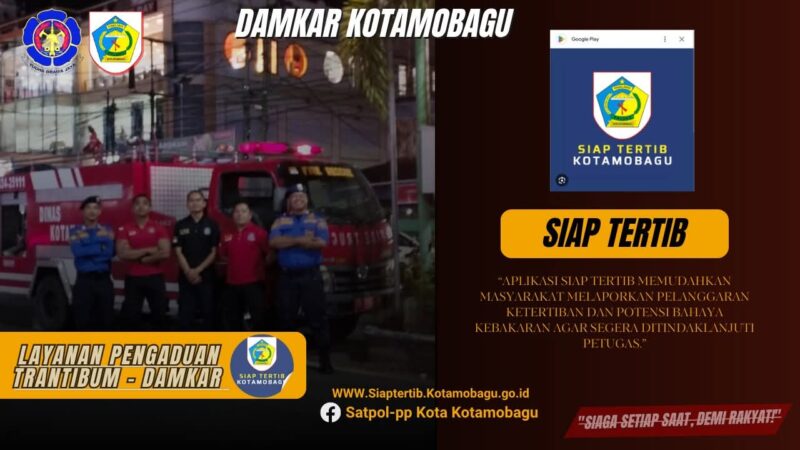 KOTAMOBAGU – Pemerintah Kota (Pemkot) Kotamobagu melalui Satuan Polisi Pamong Praja (Satpol PP) dan Dinas Pemadam Kebakaran (Damkar) kini menghadirkan inovasi layanan publik berbasis digital bernama “SIAP TERTIB”.
