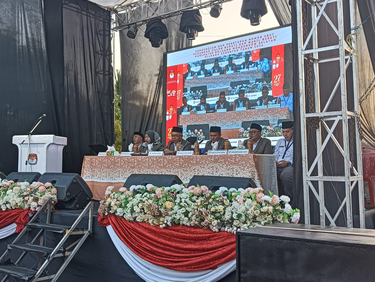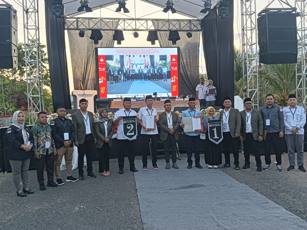 BOLSEL– Komisi Pemilihan Umum (KPU) Kabupaten Bolaang Mongondow Selatan (Bolsel) menggelar Rapat Pleno Terbuka untuk pengundian dan penetapan nomor urut pasangan calon Bupati dan Wakil Bupati dalam Pilkada Bolsel 2024. Acara ini berlangsung meriah dan dihadiri oleh berbagai pihak, termasuk forkopimda dan pengurus partai politik.