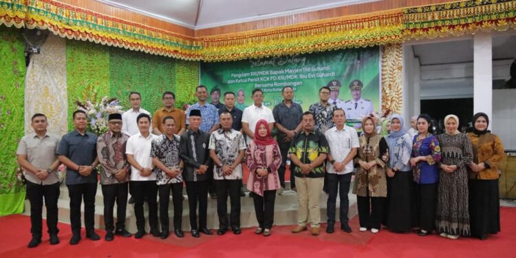 KOTAMOBAGU — Wali Kota Kotamobagu, dr. Weny Gaib, Sp.M., bersama Wakil Wali Kota, Rendy Virgiawan Mangkat, S.H., M.H., menyambut kunjungan Panglima Kodam XIII/Merdeka, Mayjen TNI Suhardi, S.I.P., dan Ketua Persit Kartika Chandra Kirana Daerah XIII Merdeka, Ny. Evi Suhardi. Acara penyambutan berlangsung penuh keakraban di Aula Rumah Dinas Wali Kota Kotamobagu.