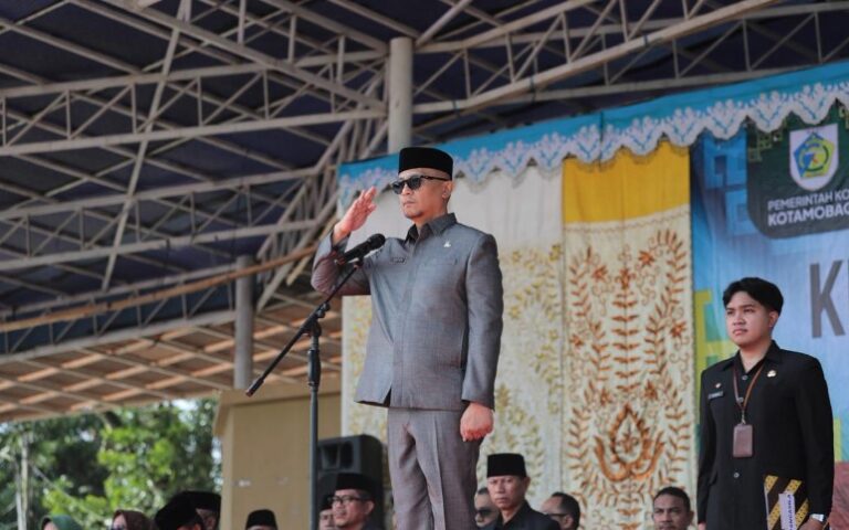 Adapun upacara yang berlangsung khidmat tersebut dipimpin langsung oleh Sekretaris Daerah (Sekda) Kotamobagu, Sofyan Mokoginta, dengan mengusung tema “Pancasila Perekat Bangsa Menuju Indonesia Raya.”