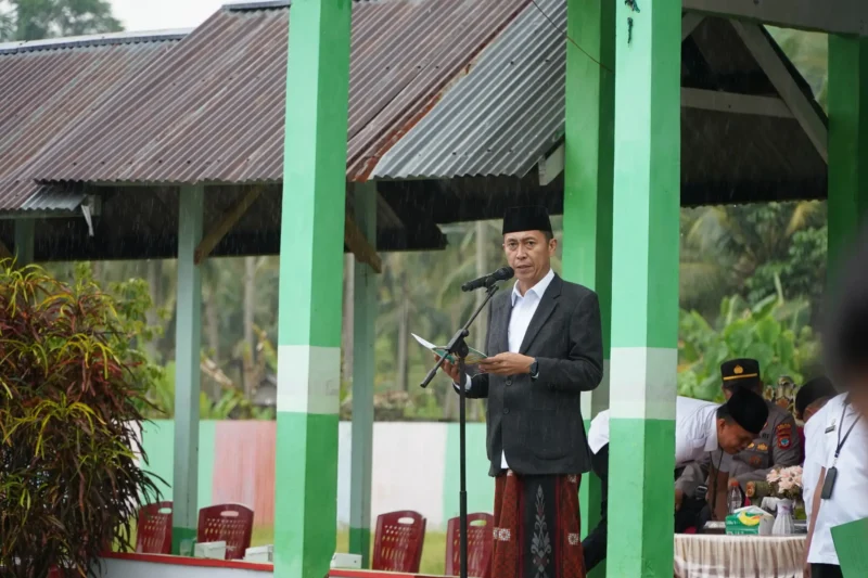 Pernyataan penuh makna itu dipaparkan Bupati H. Iskandar Kamaru SPt, MSi saat memberikan amanat pada peringatan Hari Santri Nasional (HSN) Tahun 2025 di halaman Madrasah Ibtidaiyah Negeri (MIN) 1 Bolsel, Desa Tolondadu Kecamatan Bolaang Uki. Rabu, 22 Oktober 2025.