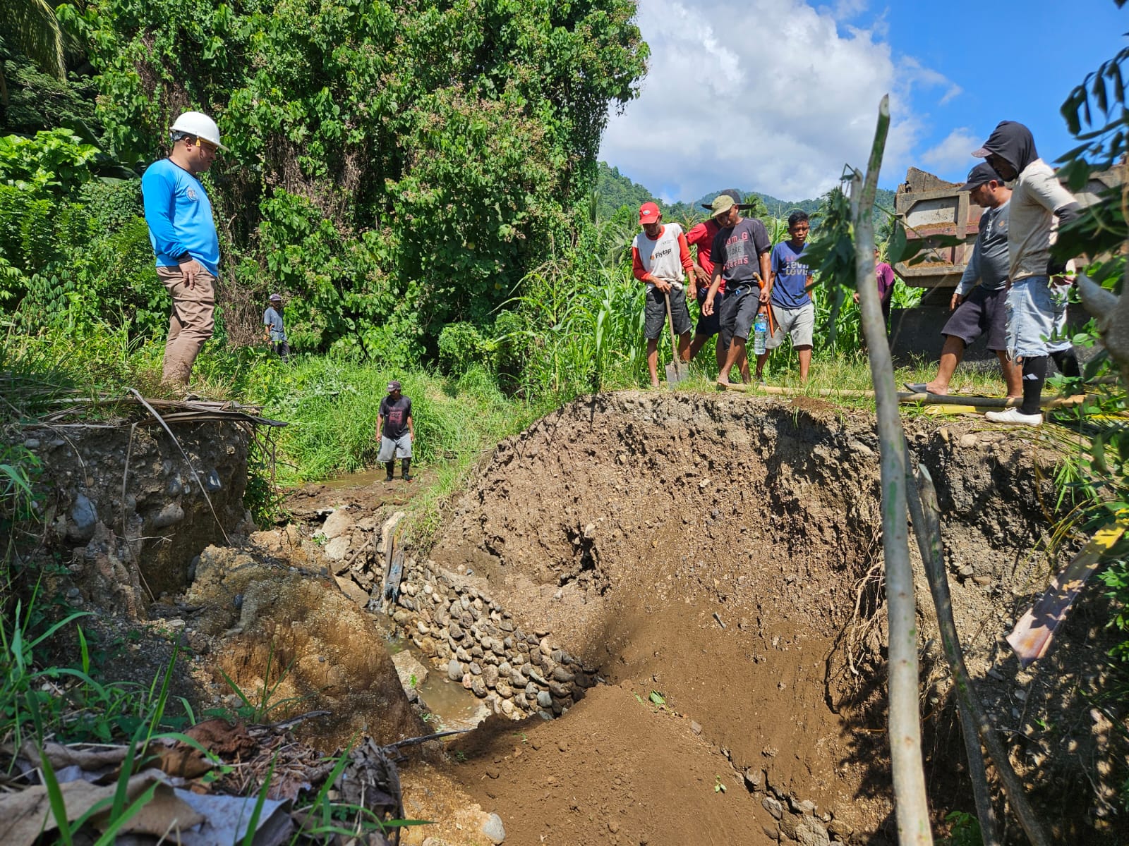 Kades Cempaka, Ronal Hasan mengungkapkan bahwa kerusakan saluran irigasi ini sudah diperbaiki oleh petani di empat desa setempat yang dipimpin langsung Wakil Ketua DPRD Bolmong, Sulhan Manggabarani dari Partai Golkar dengan bantuan excavator dan masyarakat setempat untuk menutupi dinding yang jebol.