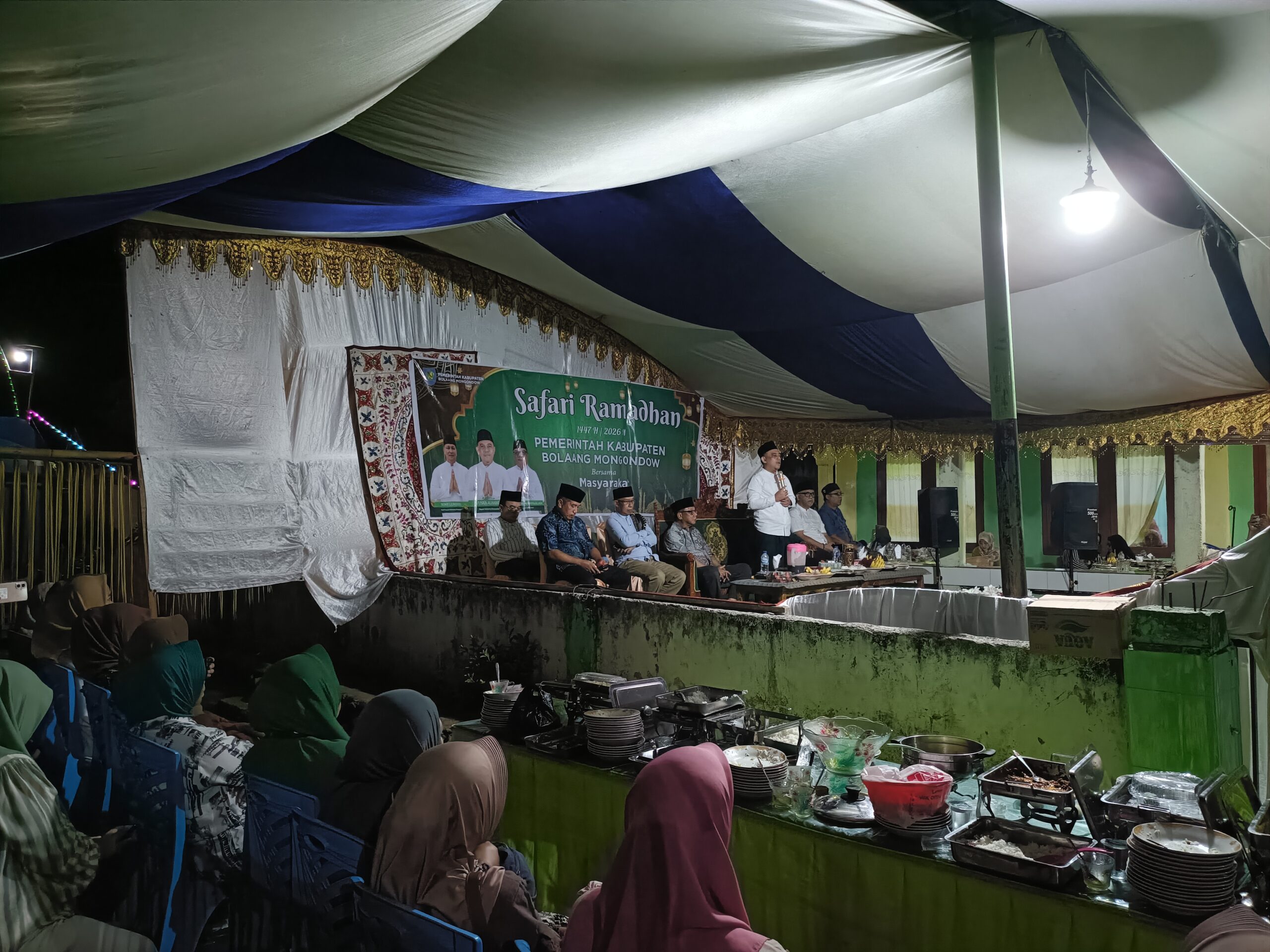 Safari Ramadhan tersebut dipimpin langsung oleh Bupati Bolmong, Yusra Alhabsyi. Turut hadir Sekretaris Daerah Bolmong, Kepala Kantor Kementerian Agama Bolmong, unsur Forkopimcam Bilalang, serta para pimpinan Organisasi Perangkat Daerah (OPD) di lingkungan Pemkab Bolmong.