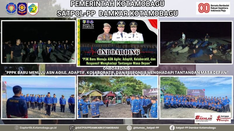 KOTAMOBAGU – Satuan Polisi Pamong Praja (Satpol-PP) dan Pemadam Kebakaran (Damkar) Kota Kotamobagu melaksanakan kegiatan Onboarding bagi Pegawai Pemerintah dengan Perjanjian Kerja (PPPK) baru, bertema “PPPK Baru Menuju ASN Agile, Adaptif, Kolaboratif, dan Responsif Menghadapi Tantangan Masa Depan.”