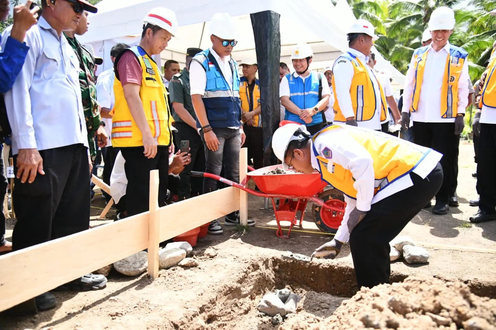 Hadir dalam acara, Sekprov Sulut Tahlis Gallang SIP, MM, Bupati Boltim Oskar Manoppo, Kajari Kotamobagu Elwin A. Khahar SH, MH, jajaran forkopimda kabupaten, jajaran Kementerian PUPR, Ketua DPRD Ir. Ariffin Olii bersama para Anggota, Sekda. M. Arvan Ohy SSTP, MM, para pejabat tinggi pratama Pemda, pimpinan BSG, pimpinan instansi vertikal dan masyarakat sekitar.