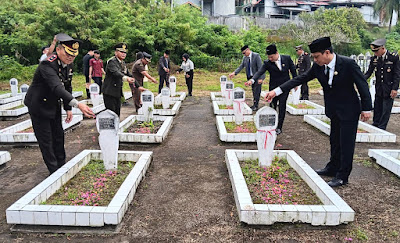 Usai upacara di Alun-Alun Boki Hotinimbang, Wali Kota bersama Wakil Wali Kota, Forkopimda, dan rombongan melanjutkan rangkaian kegiatan dengan melaksanakan ziarah nasional di Taman Makam Pahlawan (TMP) Kelurahan Mongkonai, Kecamatan Kotamobagu Barat, sebagai bentuk penghormatan kepada para pahlawan yang telah mendahului. ***