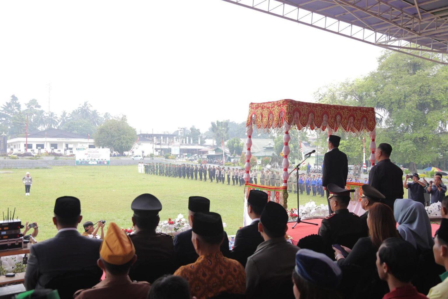 Upacara tersebut dihadiri jajaran Forkopimda, pimpinan OPD, staf khusus Wali Kota, camat, lurah, kepala desa, serta unsur TNI, Polri, ASN, dan organisasi kepemudaan.